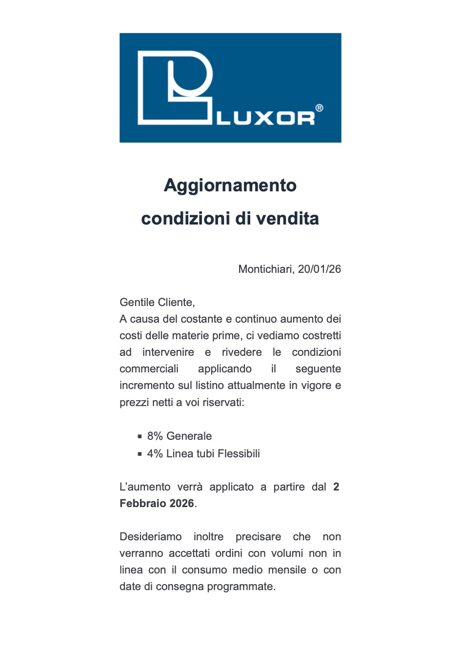 Preisliste Luxor Aumento Prezzi