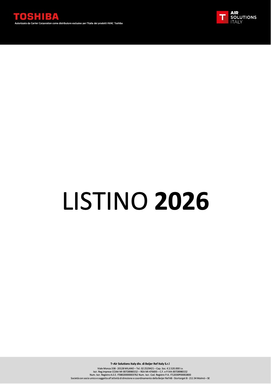 Liste des prix Toshiba Italia Multiclima 2026 - Rev. 1