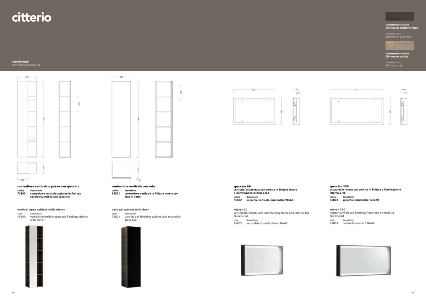 contenitore verticale in finitura rovere con