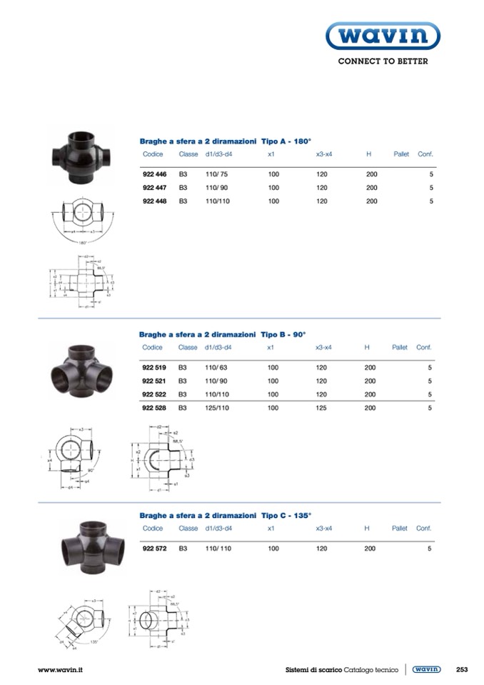 Braghe a sfera a 2 diramazioni Tipo C - 135°