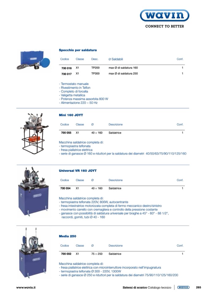 - serie di ganasce Ø 160 e riduttori per la saldatura dei diametri 40/50/63/75/90/110/125/160