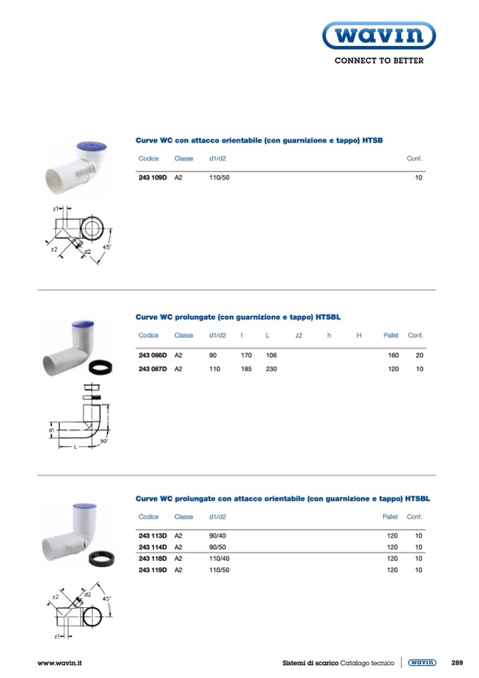 Curve WC prolungate (con guarnizione e tappo) HTSBL