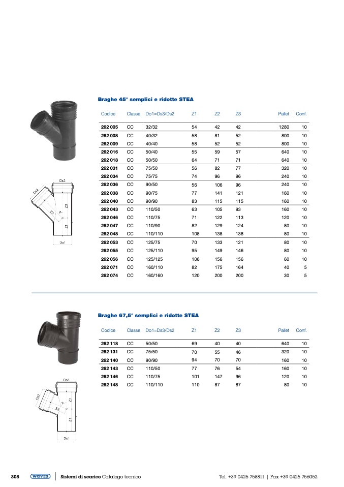 Braghe 45° semplici e ridotte STEA