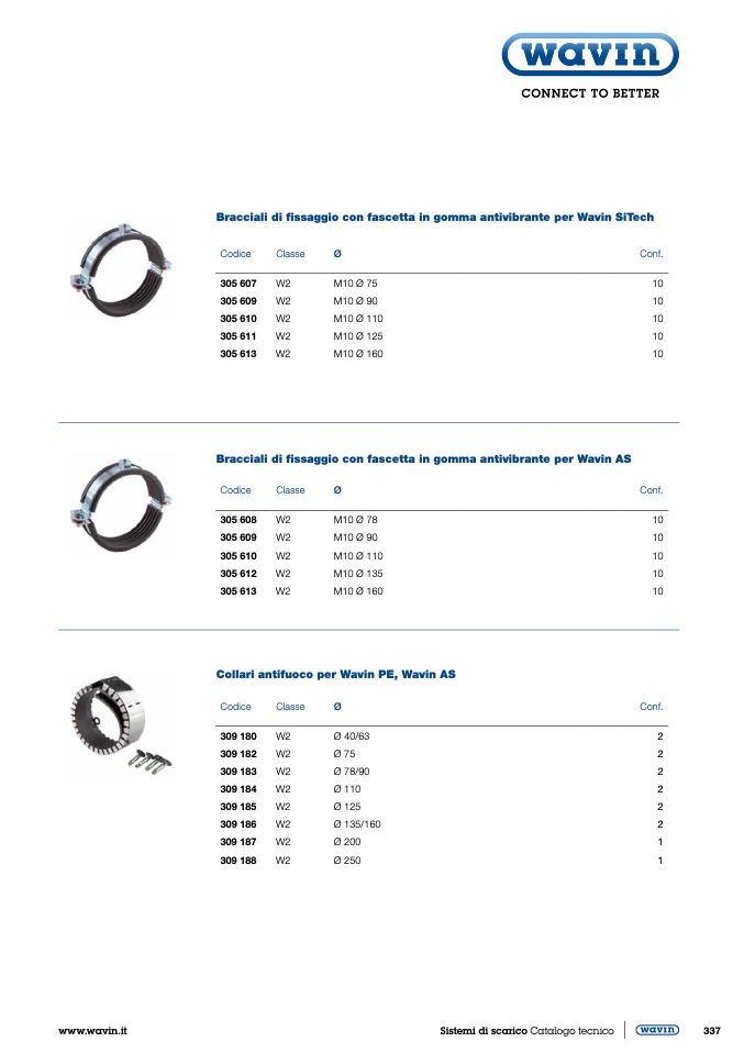 Collari antifuoco per Wavin PE, Wavin AS