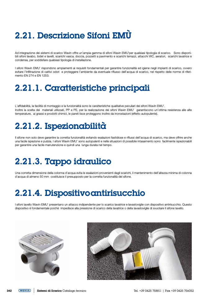 I sifoni Wavin EMU’ rispondono ampiamenti ai requisiti fondamentali per garantire funzionalità ed igiene negli impianti di scarico, ovvero