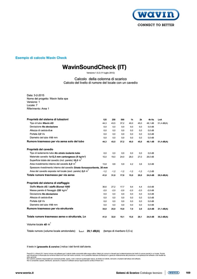 Esempio di calcolo Wavin Check
