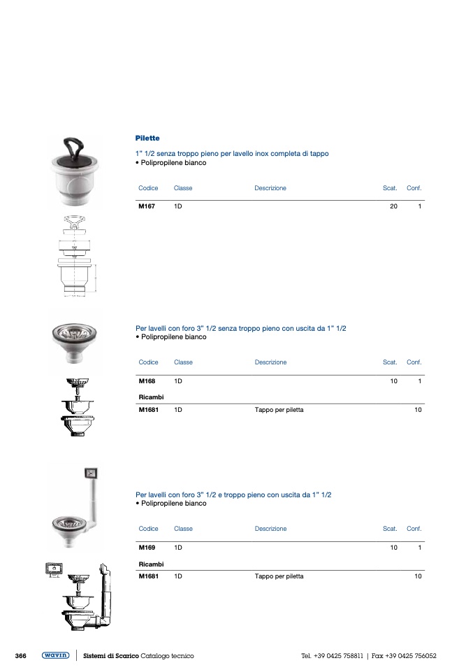 Per lavelli con foro 3” 1/2 e troppo pieno con uscita da 1” 1/2