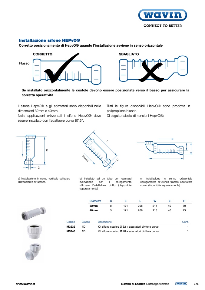 Il sifone HepvO® e gli adattatori sono disponibili nelle