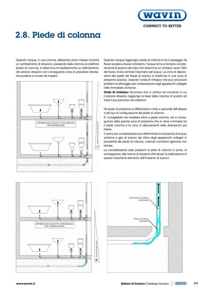 E’ consigliabile non installare sifoni a piede colonna; ciò in conse-