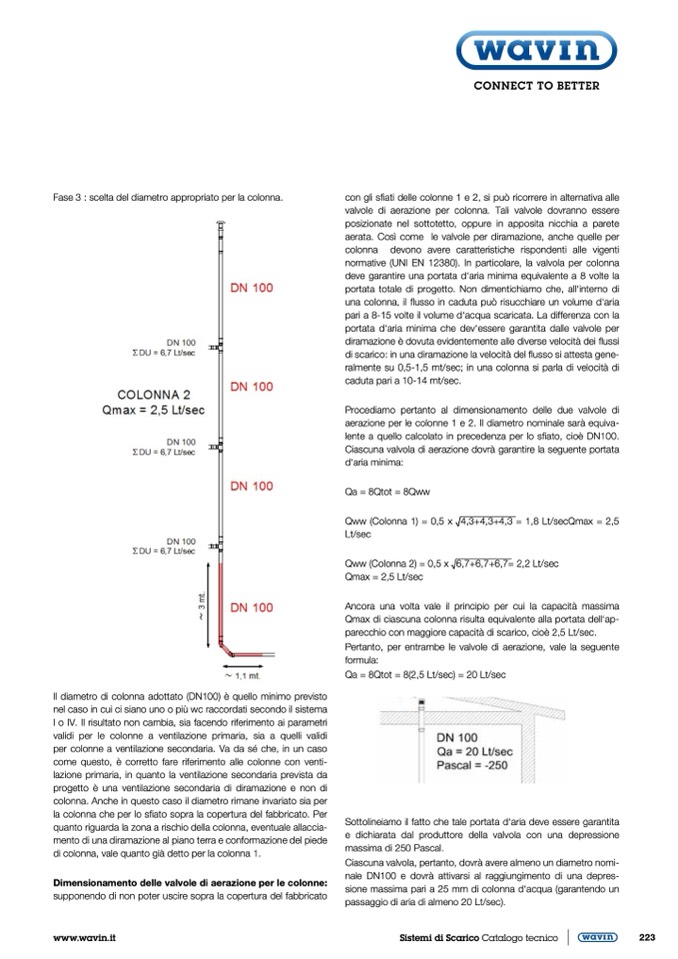 Il diametro di colonna adottato (DN100) è quello minimo previsto