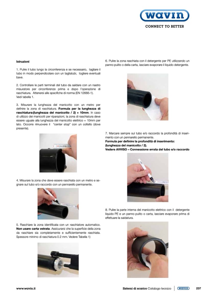 gnare sul tubo e/o raccordo con un pennarello permanente.