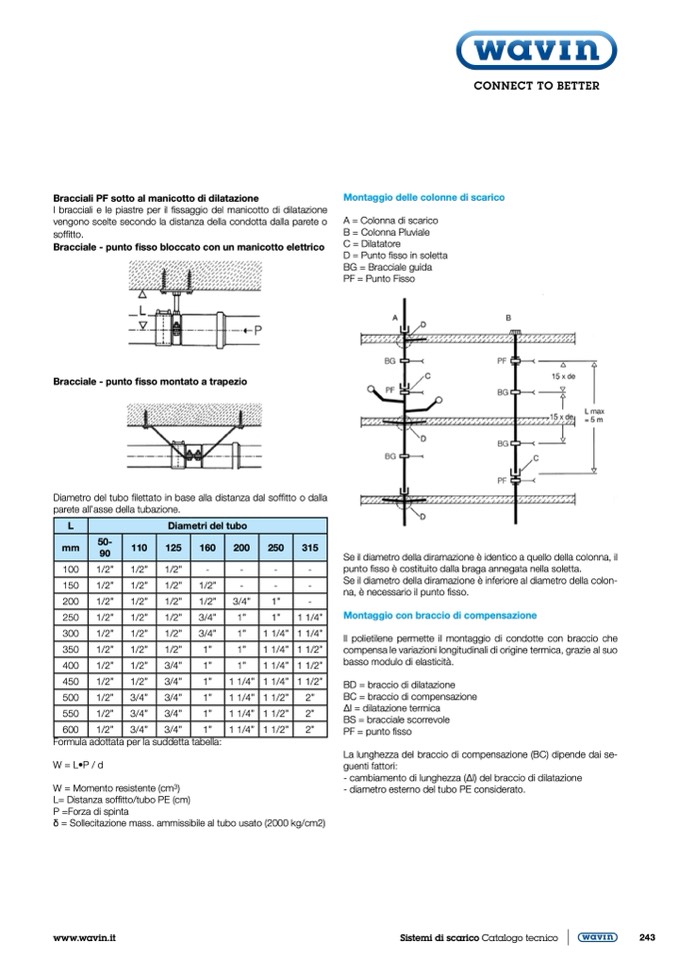 δ = Sollecitazione mass. ammissibile al tubo usato (2000 kg/cm2)