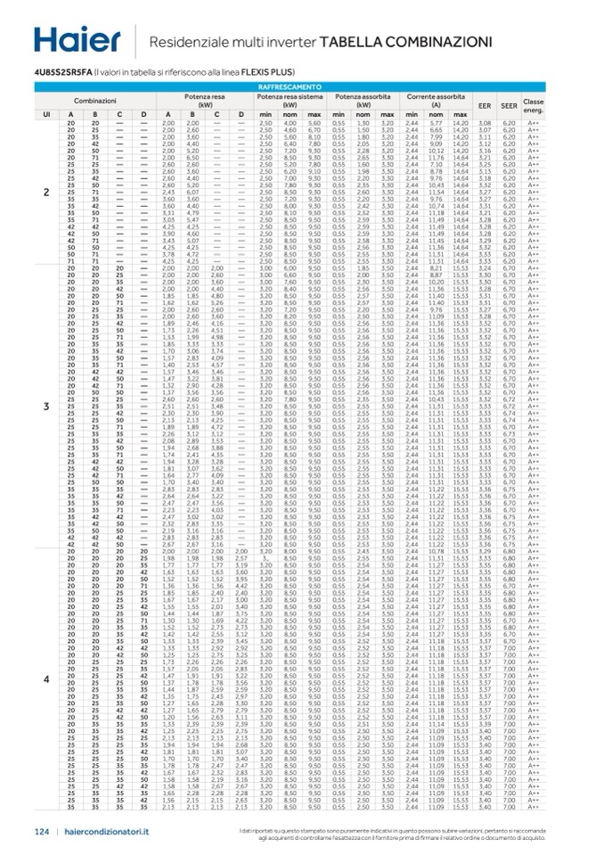 4U85S2SR5FA (I valori in tabella si riferiscono alla linea