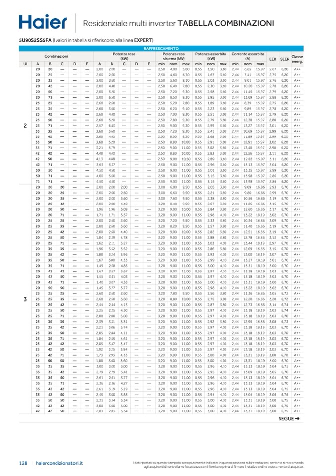 5U90S2SS5FA (I valori in tabella si riferiscono alla linea