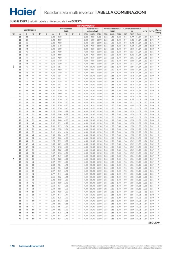 5U90S2SS5FA (I valori in tabella si riferiscono alla linea