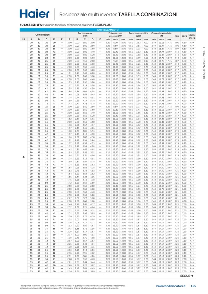 5U125S2SN1FA (I valori in tabella si riferiscono alla linea
