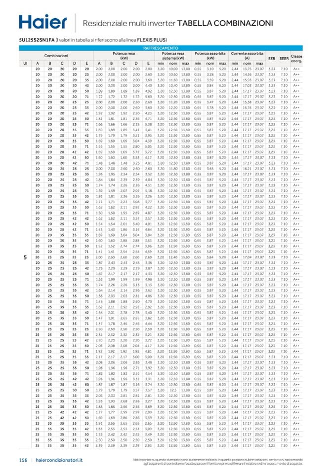 5U125S2SN1FA (I valori in tabella si riferiscono alla linea