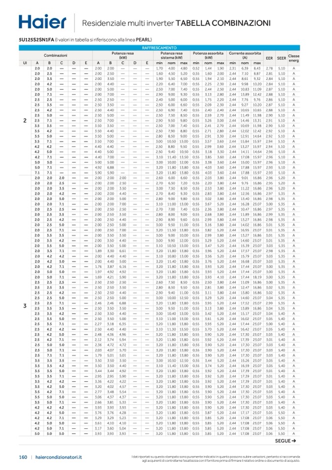 5U125S2SN1FA (I valori in tabella si riferiscono alla linea