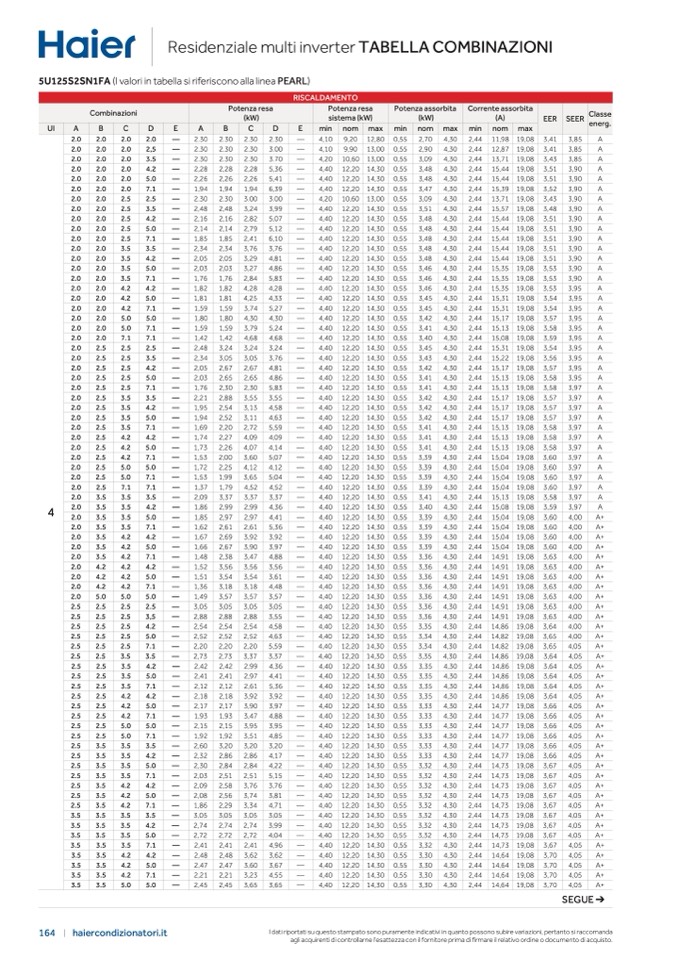 5U125S2SN1FA (I valori in tabella si riferiscono alla linea