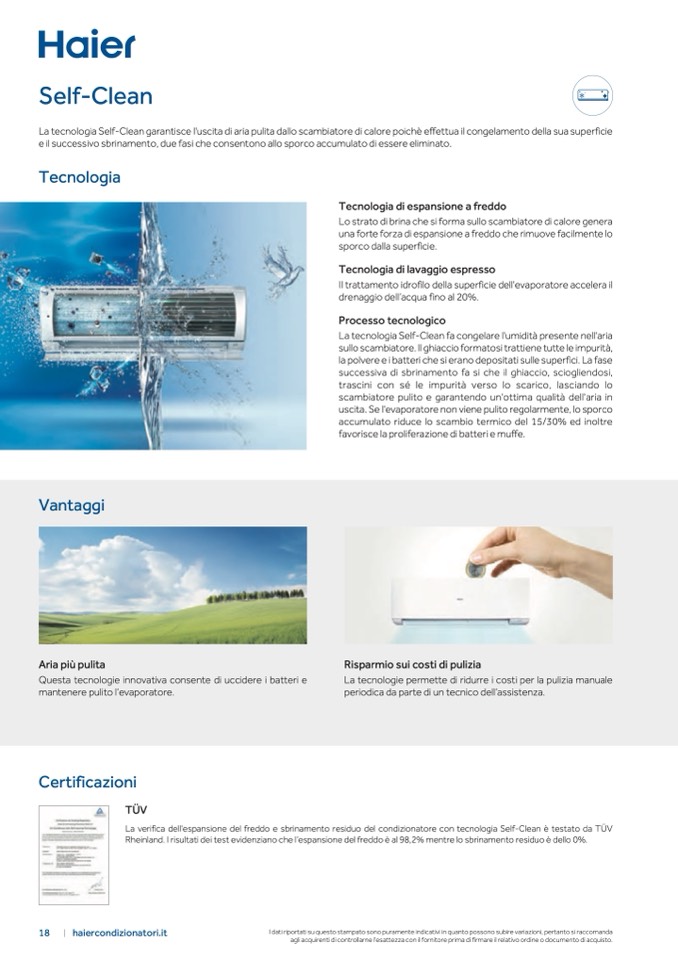 La tecnologia Self-Clean garantisce l'uscita di aria pulita dallo scambiatore di calore poichè effettua il congelamento della sua superficie