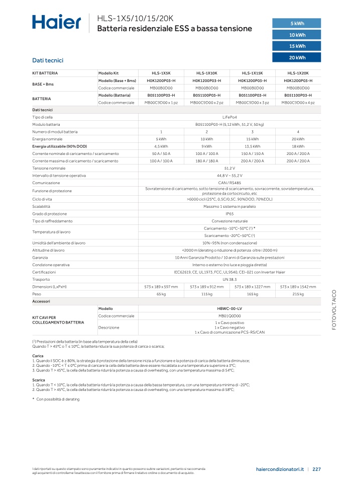 IEC62619, CE, UL1973, FCC, UL9540, CEI-021 con Inverter Haier