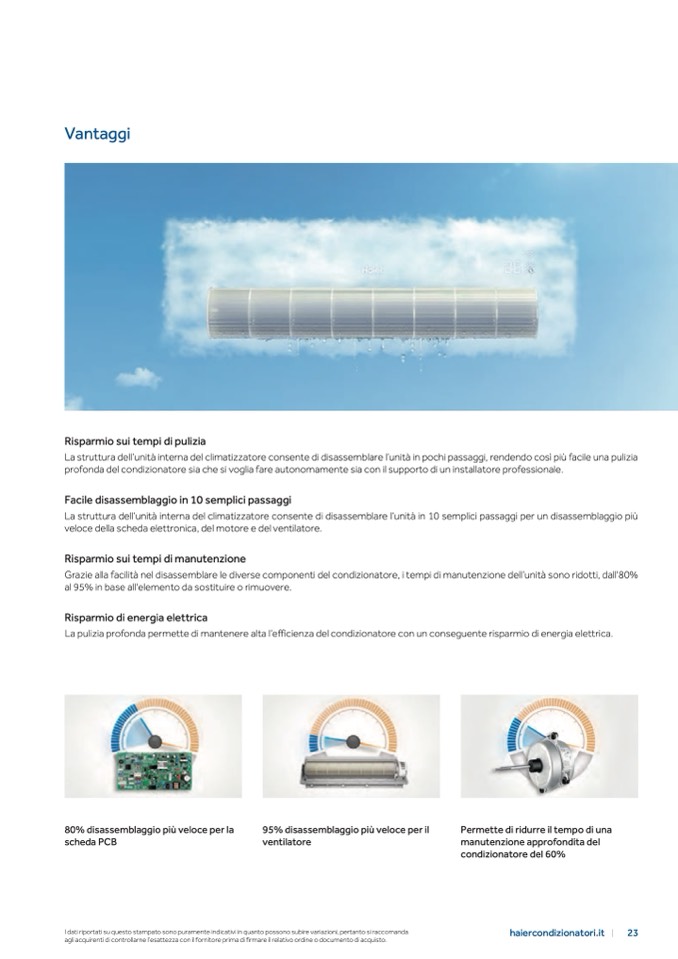Grazie alla facilità nel disassemblare le diverse componenti del condizionatore, i tempi di manutenzione dell’unità sono ridotti, dall'80%