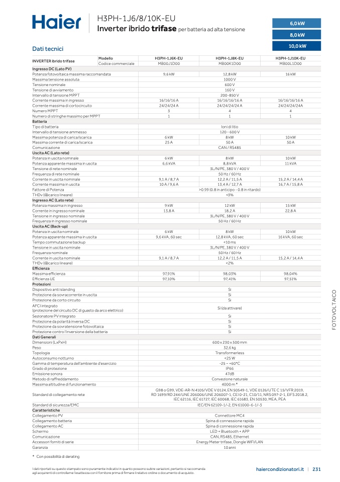 G98 o G99, VDE-AR-N 4105/VDE V 0124, EN 50549-1, VDE 0126/UTE C 15/VFR:2019,