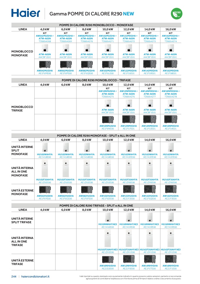POMPE DI CALORE R290 MONOFASE - SPLIT e ALL IN ONE