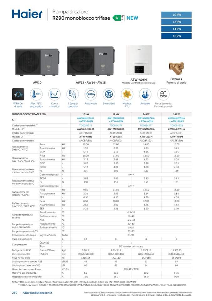 Nota: * (1) Le condizioni di test fanno riferimento alla EN 14511-2018 e il metodo di test alla EN 12102-2017 (A7/W35)