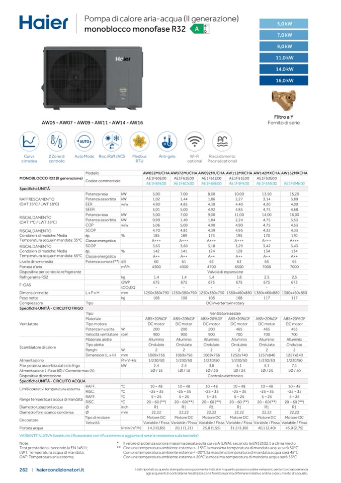 * Il valore di potenza sonora massima pesata sulla curva A (LWA), secondo la EN12102.1 a clima medio