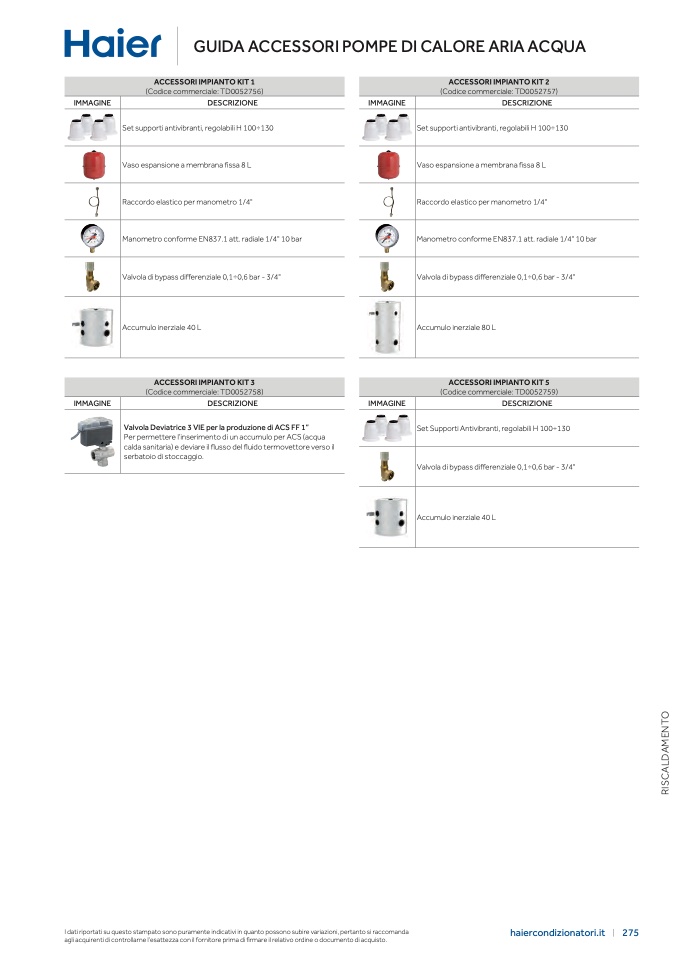 GUIDA ACCESSORI POMPE DI CALORE ARIA ACQUA