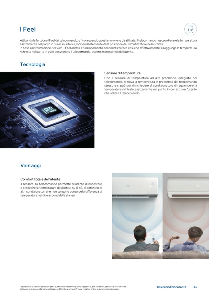 Attivando la funzione I Feel dal telecomando, e fino a quando questa non viene disattivata, il telecomando riesce a rilevare la temperatura