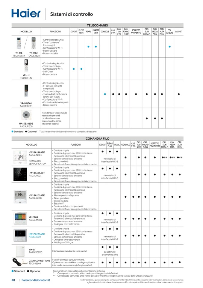 ** Con questo comando a filo non è possibile modificare la pressione statica delle unità canalizzate