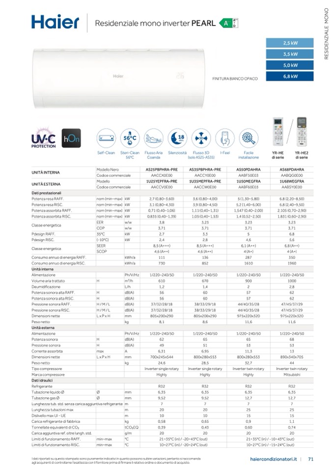 Lunghezza tub. std. senza carica aggiuntiva refrigerante