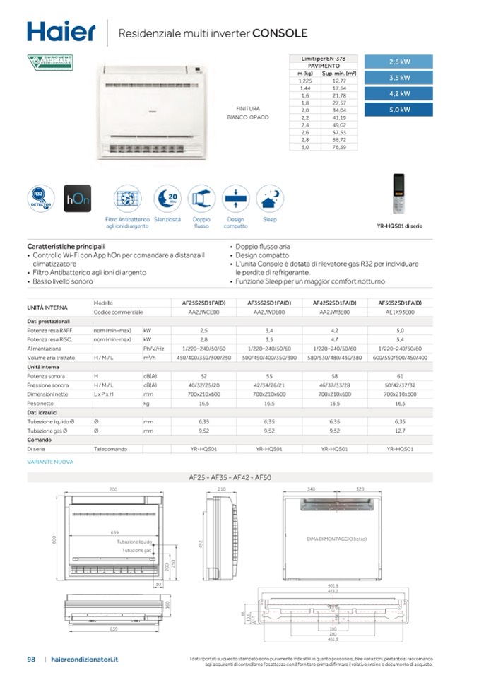 L’unità Console è dotata di rilevatore gas R32 per individuare