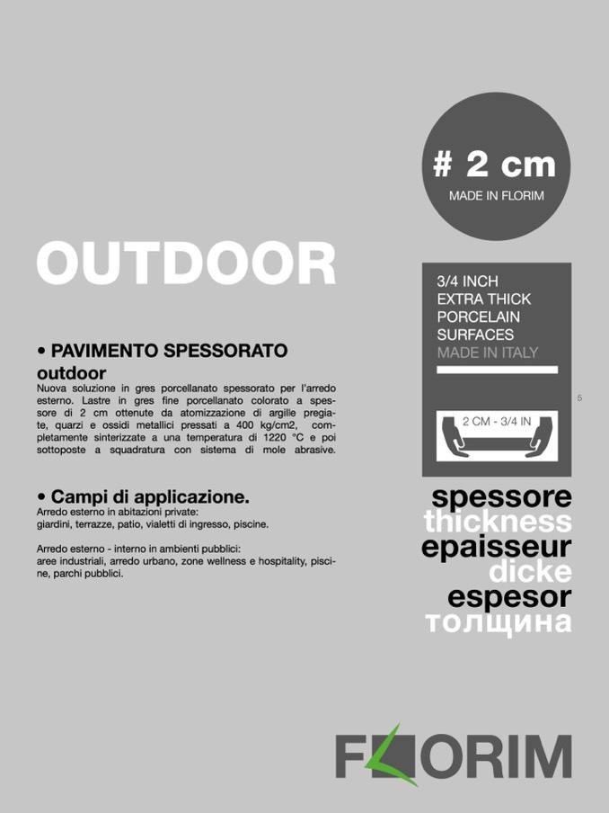 esterno. Lastre in gres fine porcellanato colorato a spes-
