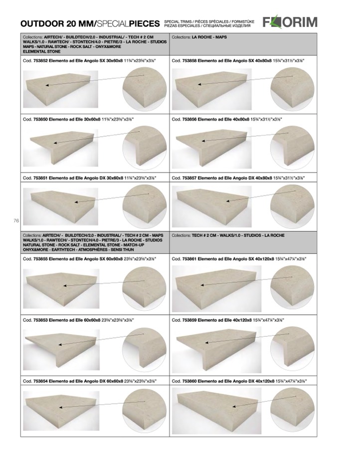Cod. 753857 Elemento ad Elle Angolo DX 40x80x8 15p”x312”x38”