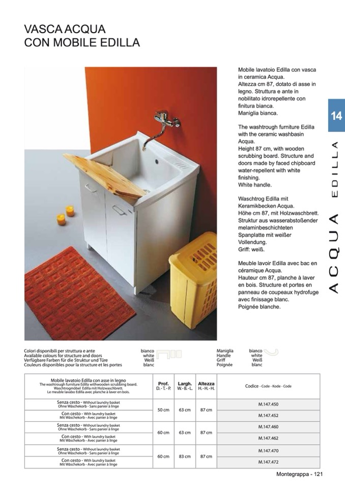 Le meuble lavabo Edilla avec planche à laver en bois.