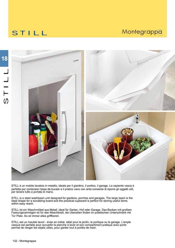STILL è un mobile lavatoio in metallo, ideale per il giardino, il portico, il garage. La capiente vasca è