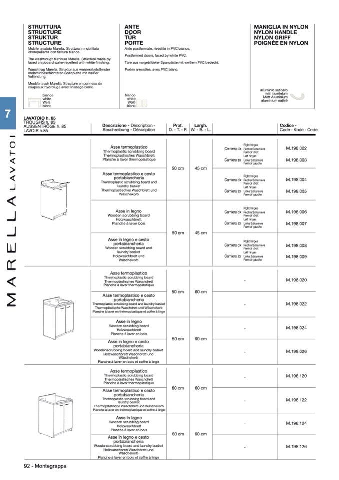 Mobile lavatoio Marella. Struttura in nobilitato