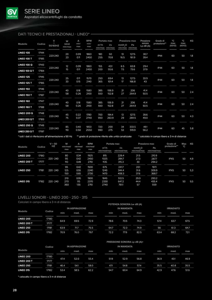 * tutti i dati si riferiscono all’alimentazione a 50 Hz