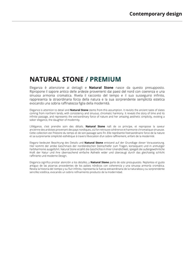 Elegance is attention to detail and Natural Stone stems from this assumption. It revisits the ancient taste of slates