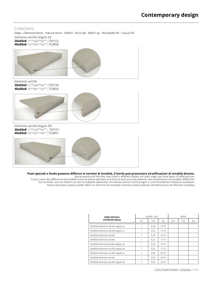 Piezas especiales y bases pueden diferir en términos de tonalidad, el borde puede presentar estratificaciones de diferente tonalidad.