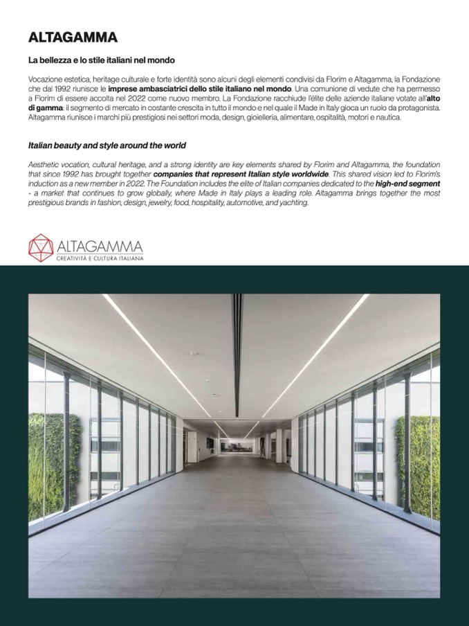 induction as a new member in 2022. The Foundation includes the elite of Italian companies dedicated to the high-end segmen