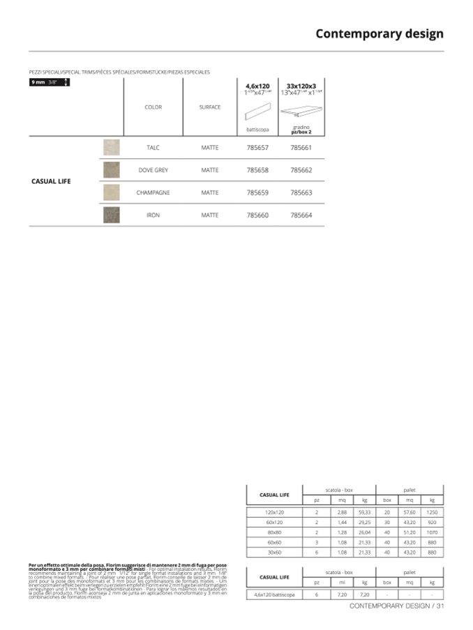 to combine mixed formats. - Pour réaliser une pose parfait, Florim conseille de laisser 2 mm d