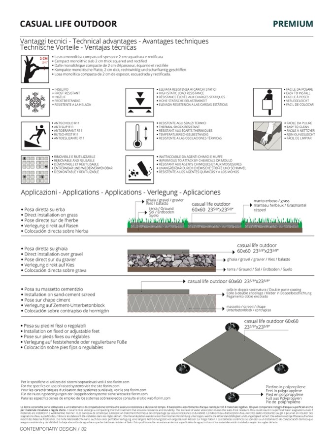 per materiale installato a regola d’arte. / Ceramic tiles undergo a compacting thermal treatment that ensures resistance and durability. The low level of water absorption makes the slabs frost resistant. This could result in superficial water stagnations even if
