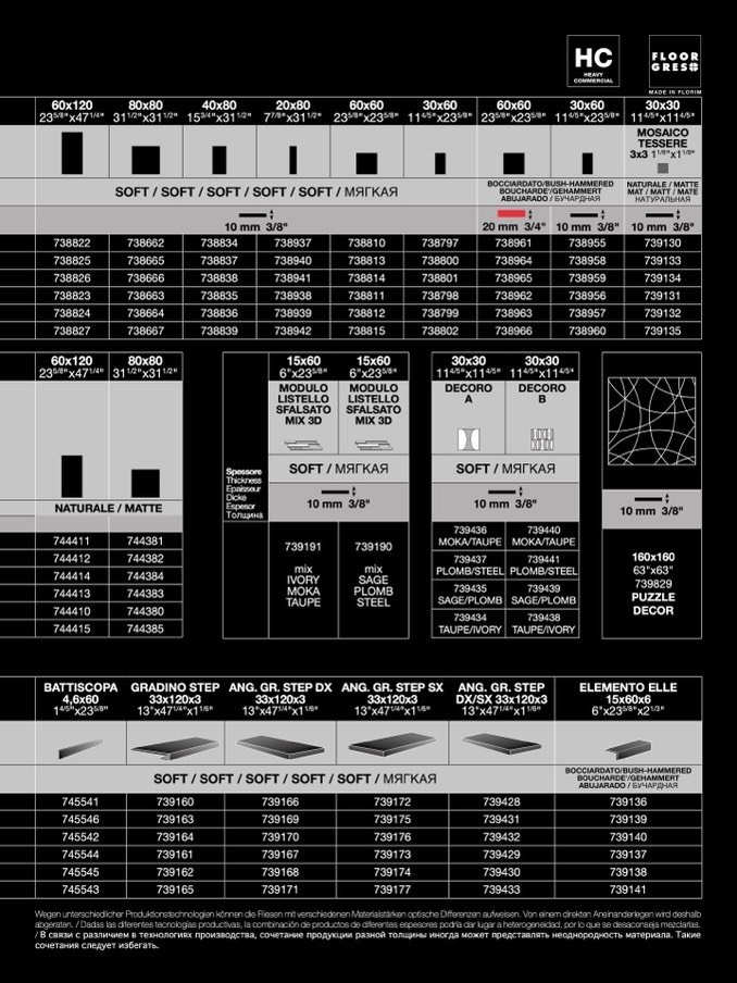 Wegen unterschiedlicher Produktionstechnologien können die Fliesen mit verschiedenen Materialstärken optische Differenzen aufweisen. Von einem direkten Aneinanderlegen wird deshalb