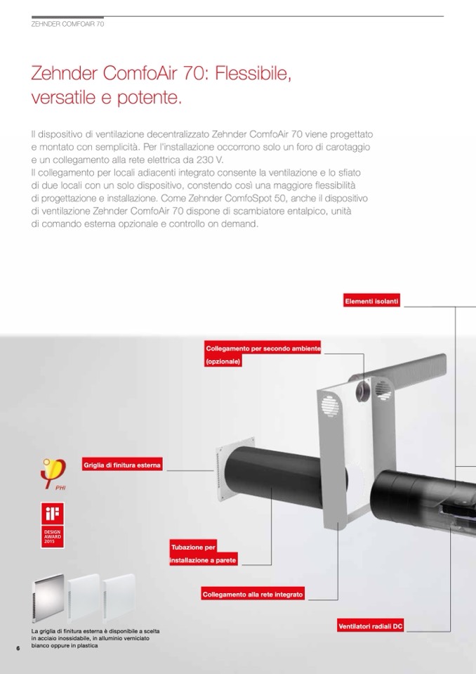 di progettazione e installazione. Come Zehnder ComfoSpot 50, anche il dispositivo