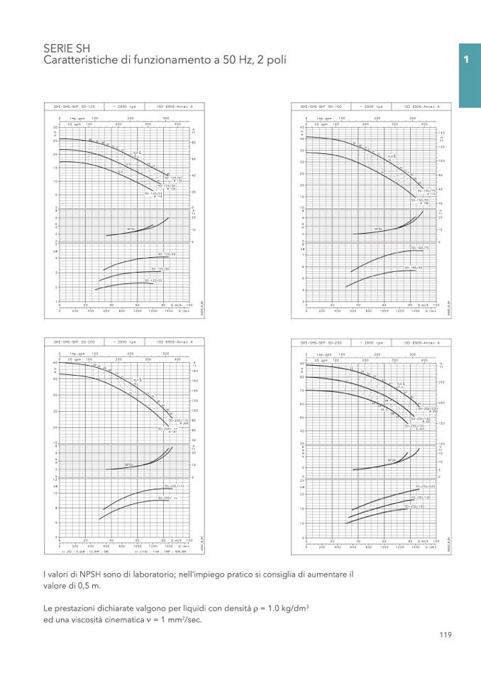 I valori di NPSH sono di laboratorio; nell’impiego pratico si consiglia di aumentare il