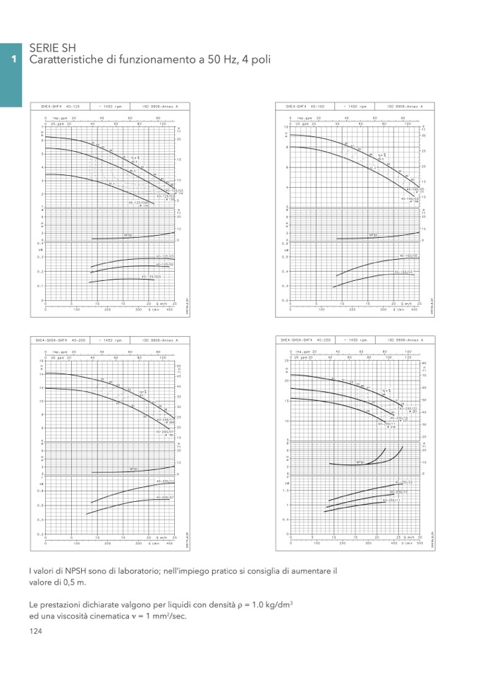 I valori di NPSH sono di laboratorio; nell’impiego pratico si consiglia di aumentare il
